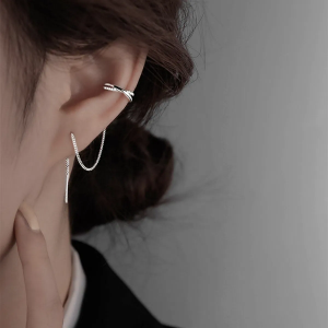 Набор из двух серёжек-каффов с цепочкой и кубическим камнем «Х» — стильное и современное украшение