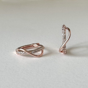 Слим-серьги в виде волнистых мини-колец с кубическим камнем и замком one-touch