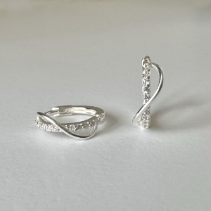 Слим-серьги в виде волнистых мини-колец с кубическим камнем и замком one-touch