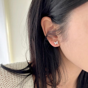 Мини-серьги из серебра 925 пробы с опалом, кубическим кристаллом и бабочкой