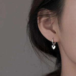 Серьги-кольца с подвесками в форме сердца и замком one-touch
