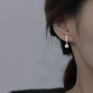 серьги-капли с жемчужным подвесом и вставкой из кубического циркония