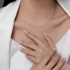 тонкая многослойная цепочка с мини-бусинами в ярких тропических оттенках