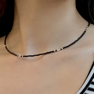 Чёрное колье с миниатюрными бусинами в винтажном стиле