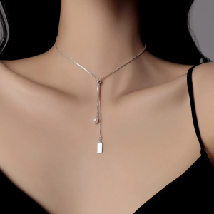 тонкая регулируемая цепочка с жемчужным подвесом и гравированным квадратом
