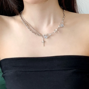 миниатюрный крест-подвеска в стиле Y2K на прочной цепочке