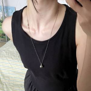 Серебристое колье с подвеской в виде подвижного шарика из хирургической стали