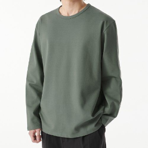 Heavy Ponte Relaxed Crew Neck Long Sleeve T-Shirt [Khaki Grey]