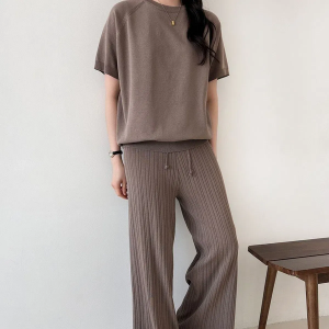 • Viscose Oversized Knit T-Shirt & Pleated Pants Set