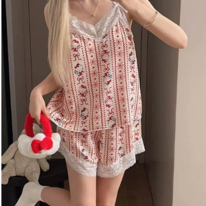 Kitty Lace Strap Cami & Shorts Set