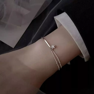 Серебряный браслет с двойной цепочкой и кубиком