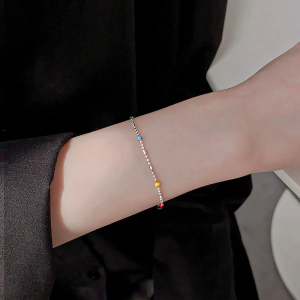 Серебристый браслет с миниатюрными цветными бусинами и тонкой цепочкой