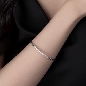 тонкий бэнгл с декоративной гравировкой и блестящими деталями