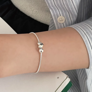 Серебряный браслет с подвеской в форме сердца и бусиной на гладкой цепочке