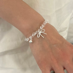 Серебряный браслет с подвеской-бантом и прозрачными кристаллами