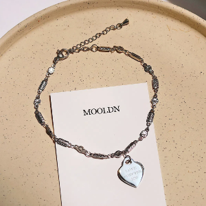 Браслет на ногу с подвеской-сердечком с гравировкой из хирургической стали (2 цвета)