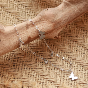 Серебряный браслет на ногу с подвеской-бабочкой и кубическим цирконием