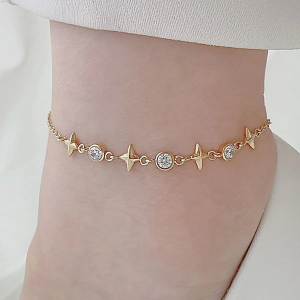 Серебряный браслет на ногу с подвеской в форме вспышки и кубическим цирконием