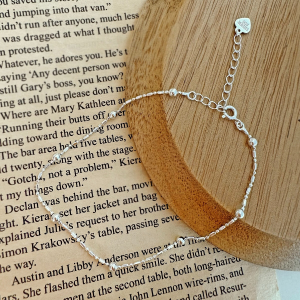 • Серебряный браслет на ногу с шариками и квадратной цепочкой из серебра 925 пробы