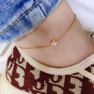 Браслет на ногу с кубическим цирконием из хирургической стали