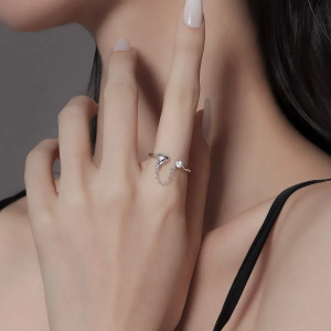 • Открытое кольцо с миниатюрным сердцем и кристаллом на цепочке