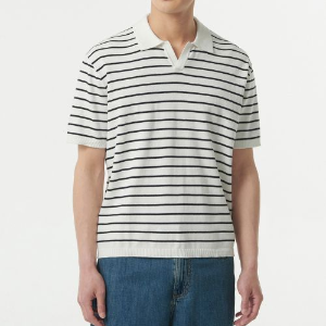 • Stripe Slit Neck Knitted Polo Shirt [White/Black]