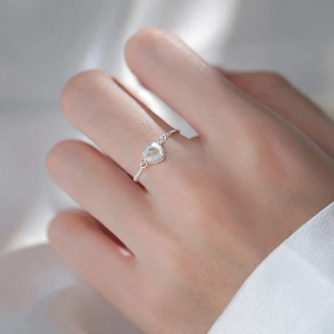 Тонкое серебряное кольцо с подвеской из опала в форме сердца и серебряным шариком — нежное и уникальное украшение для женщин