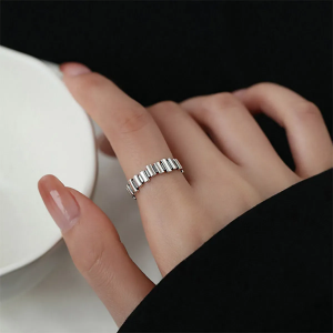 Серебряное кольцо с миниатюрным прямоугольным элементом и регулируемым дизайном
