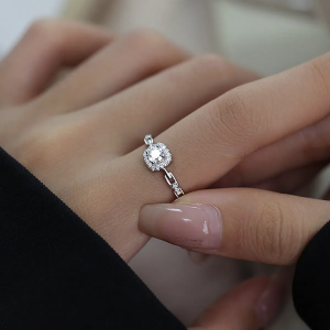 Серебряное открытое кольцо с подвеской в виде квадратного кристалла и цепочным элементом