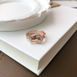 Серебряное кольцо с поясной пряжкой и сверкающим кристаллом