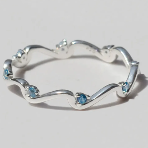 Серебряное кольцо с волнистым узором и кубическими вставками