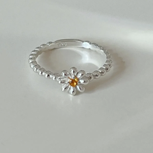 Дизайн кольцо с декоративной ромашкой и мелкими шариками