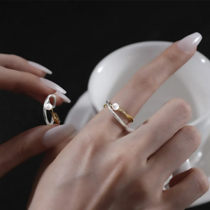 открытое кольцо с маленькой жемчужиной, перекрёстным узлом и грубой фактурой