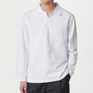 • Slit Neck Long Sleeve Piqué Polo Shirt [White]