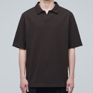 Slit Neck Piqué Polo Shirt [Dark Brown]