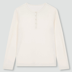 JAJU Soft Rib Henley Neck Lounge T-Shirt (Ivory) — уют и элегантность в домашнем образе