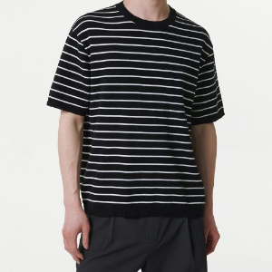 Stripe Crew Neck Short Sleeve Knit [Black/White]
