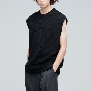 • Textured Crew Neck Knit Vest [Black]