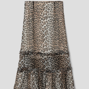• GANNI Printed Viscose Chiffon Long Ruffle Skirt