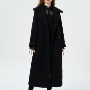 GANNI Textured Boucle Wool Coat – Black
