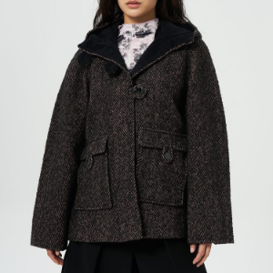• GANNI Herringbone Wool Midi Jacket – Brown