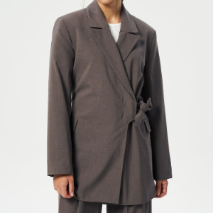 • GANNI Drapey Melange Knot Belt Blazer – Shitake