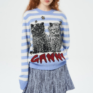 Свитер Striped Graphic Wool Mix Cats Crewneck в голубом цвете Sky Blue