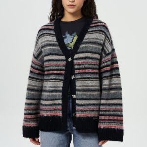 • ANNI Soft Wool Stripe Boxy Cardigan – Black