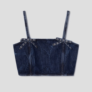 GANNI Crinkled Future Denim Strap Top – Blue