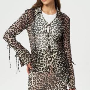 GANNI Printed Chiffon Slim Shirt - Almond Milk