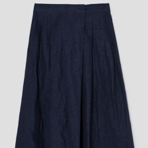 KUHO Linen Blended Crop Skirt Like Pants -Navy