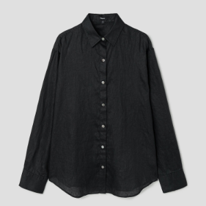 • Theory Women Relaxed Linen Boyfriend Shirt - Black