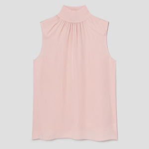 Theory Women Silk Combo Rib Neck Shell Top - Pink Sand