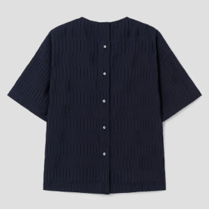 KUHO [Crease Series] Texture Half-Sleeved Blouse - Navy